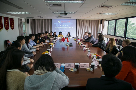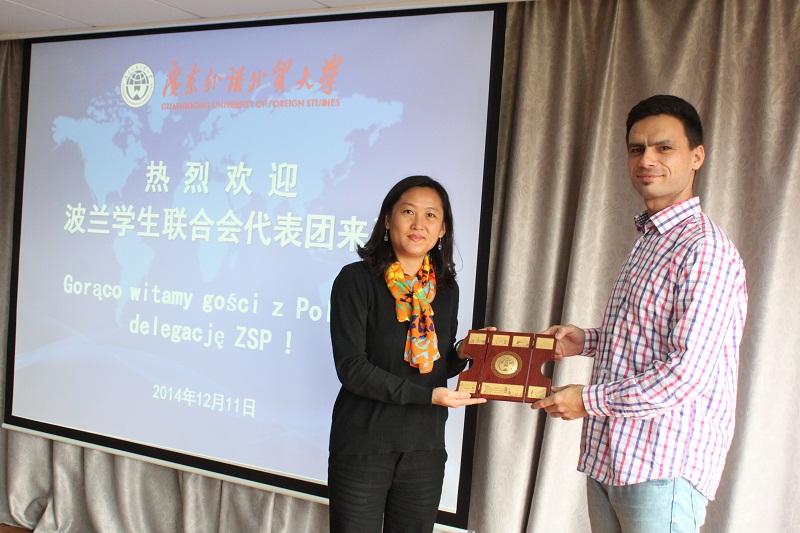江昊岩在会上也向波兰友人介绍了广东省学联的发展状况和品牌活动。我校学生会学生代表和波兰语学生代表也分别介绍了我校学生会工作和“世界文化节”、“欧罗巴文化节”等品牌活动。
