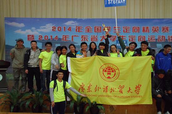 又讯 12月12日至14日,历时三天的“2014年广东省大学生定向越野锦标赛”(以下简称“省赛”)落下帷幕。广外定向代表队在此次比赛中获得了大丰收,拿下了广东省高校甲组团体总分第三名的奖杯,其中女子团队赛成功卫冕,队长杨三生在竞争激烈的个人项目中以零点四秒的优势赢得了冠军。