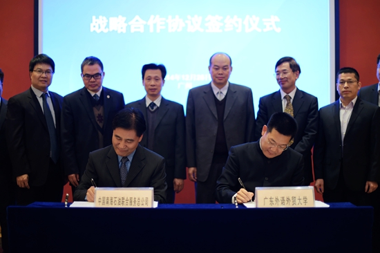 广外新闻网讯 12月25日下午,我校与中国南海石油联合服务总公司(简称南服总)首次战略合作协议签约仪式于北校行政楼贵宾厅举行。南服总董事长叶青、总经理马伟豪、副总经理谢兆定、办公室副主任张锡葵,广东南海对外服务有限公司总经理邵路亮、常务副总经理冯松波,与我校校长仲伟合、党委副书记卢景辉、副校长何传添、党办校办主任植秀聪、学生工作处处长谢应东、教务处处长焦方太、三会秘书长谢伟光出席了此次签约仪式。