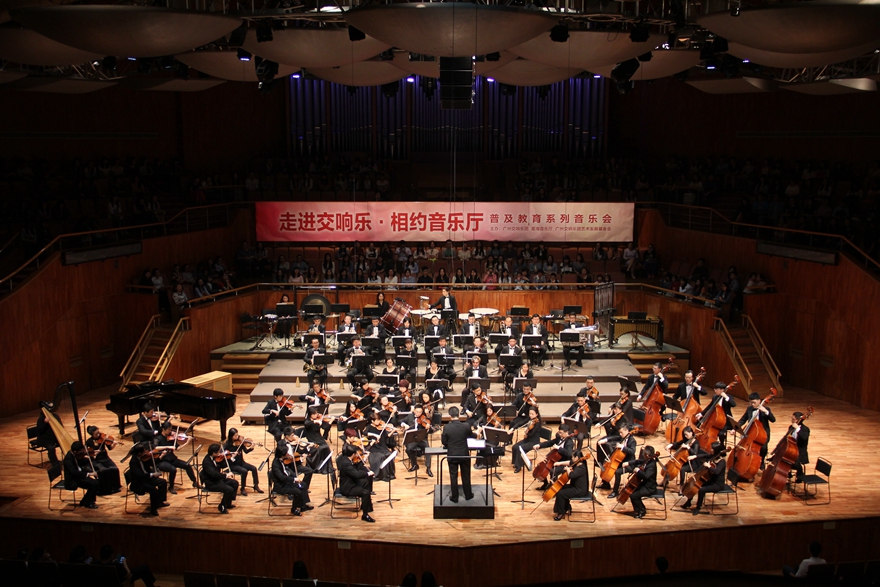 广外新闻网讯 4月1日晚,我校350余名师生走进广州星海音乐厅,共同欣赏了一年一度的“走进交响乐,相约音乐厅”普及教育系列音乐会。本次活动由广州交响乐团、星海音乐厅和广州交响乐团艺术发展基金会主办。