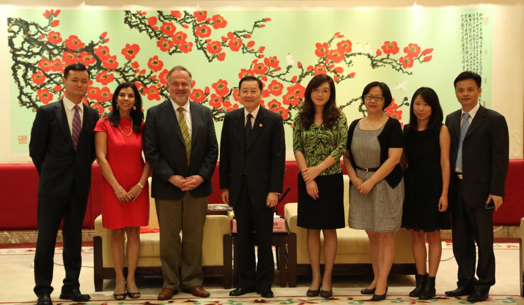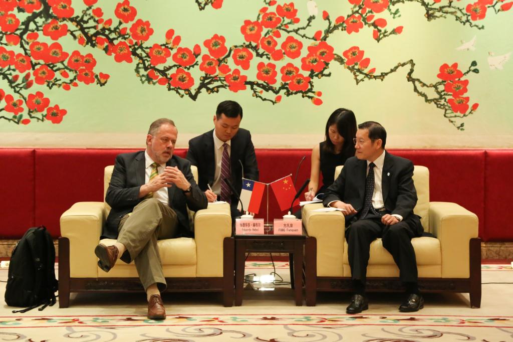 本网讯 9月8日上午,智利边境大学副校长埃德华多·赫布尔(Eduardo·Hebel)一行来访我校。我校副校长方凡泉于行政楼贵宾室会见了来宾,一同出席的有智利边境大学大学国际处处长玛莎·拉米雷斯(Martha·Ramirez),以及我校国际合作与交流处处长蔡红,西语学院院长杨可,秘鲁圣玛丽亚天主教大学孔子学院中方院长易宗勇。