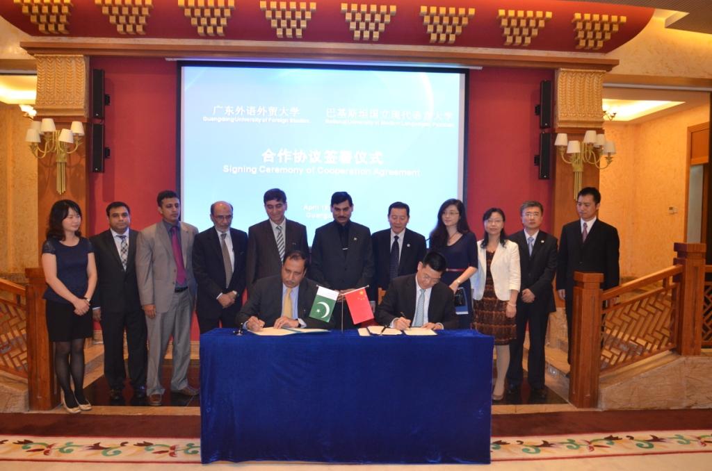 巴基斯坦国立现代语言大学校长马苏德·哈山(Masood Hasan)、副校长阿扎姆·贾马尔(Azam Jamal)等在巴基斯坦驻广州总领事巴伯·阿明(Babar Amin)的陪同下来访我校。我校校长仲伟合在北校贵宾厅亲切会见来宾并与之签署了两校合作备忘录和交换生协议。