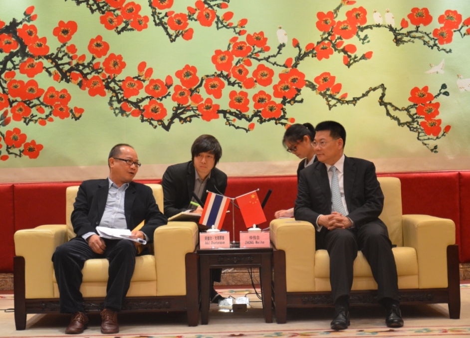 仲伟合介绍到,我校泰语专业的教学和科研水平在国内领先,所有学生均有机会到泰国学习半年到一年。在泰国总领事和泰国政府的支持下,我校建立了泰国文化室,积极推广泰国传统文化。泰国诗琳通公主曾3次到访我校,并受聘我校荣誉教授。去年10月31日,诗琳通公主率泰国军校学员再次访问我校,我们深感荣幸。他表示,目前我校与泰国交流的高校主要集中在曼谷地区,希望今后能开展与马哈沙拉堪府的教育合作。
