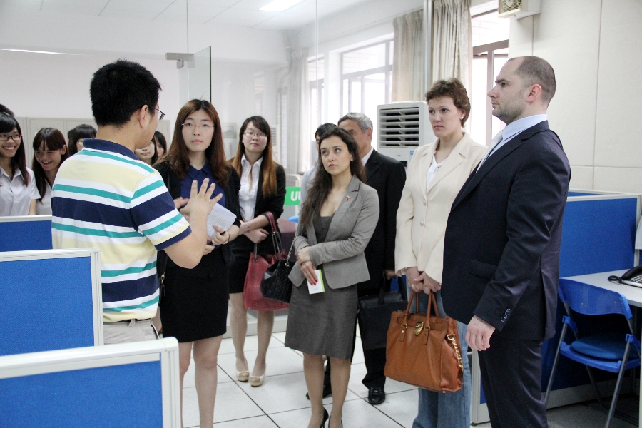 随后,代表团在我校俄语系学生代表的陪同下参观了我校的多语言服务中心、文化广场和图书馆,并在图书馆四楼会议室进行了交流座谈。