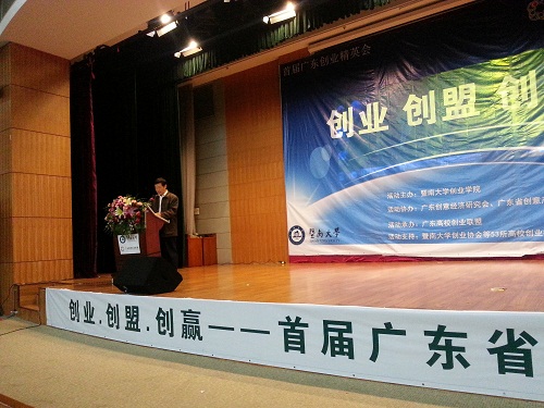 广外新闻网讯 3月30日下午,以“创业 创盟 创赢”为主题的首届广东创业精英会在暨南大学管理学院101多功能厅隆重举行。来自广外等全省53个高校创业社团的300位高校创业者和200位特邀精英嘉宾,共计500位创业精英参加了本次盛会。我校副校长许国彬以广东省人力资源研究会会长、广东省就业促进会副会长兼创业专业委员会主任、广州市职业能力建设委员会创业指导专家的身份出席大会并致辞。