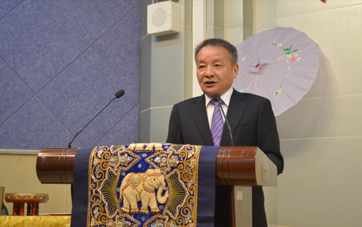 本网讯 11月21日下午,由我校东语学院泰语系主办的2019年泰国水灯节庆祝活动在北校区七教水上报告厅举行。泰王国驻广州领事馆总领事孔雀丽、泰国国家旅游局广州办事处副处长黄凯旋、泰国文化领事玛丽婉,我校副校长陈林汉出席活动。东语学院领导班子、非通用语种教学与研究中心负责人等参加活动。