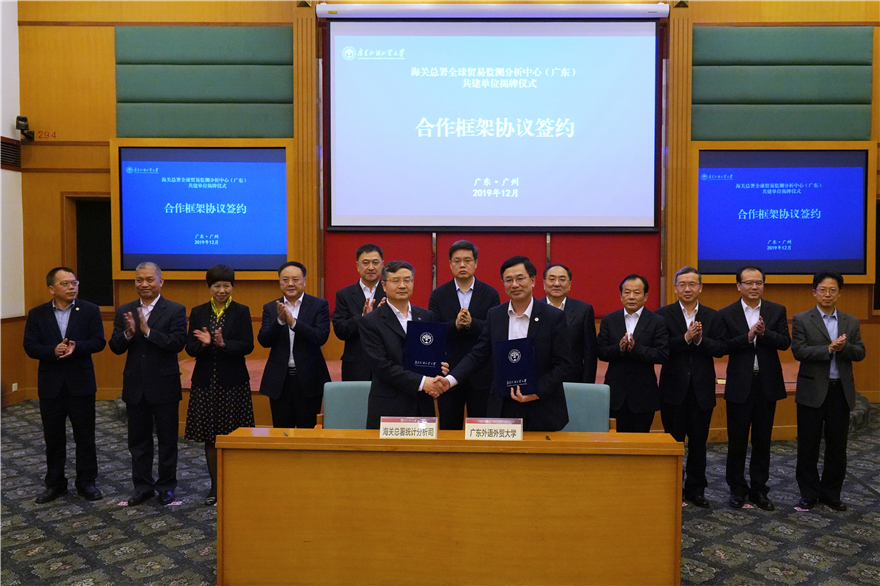12月18日,海关总署全球贸易监测分析中心(广东)与我校签署合作共建协议。广东省副省长覃伟中,海关总署党委委员、广东分署主任张广志见证协议签署并为共建单位揭牌。