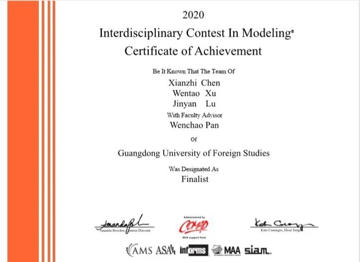 近日,2020年美国大学生数学建模竞赛(MCM)/交叉学科建模竞赛(ICM)获奖名单揭晓,我校共组建42支队伍参赛全部获奖,其中获特等奖提名奖1项(Finalist),一等奖2项(Meritorious Winner),二等奖14项(Honorable Mention),三等奖25项(Successful Participant)。我校学子克服疫情影响等困难,在参赛队伍和获奖成绩均较往年大幅提升,刷新了我校在该项竞赛的获奖记录。