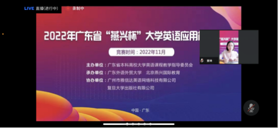 近日,由广东省本科高校大学英语课程教学指导委员会主办,我校与北京燕兴国际教育承办的2022年广东省“燕兴杯”大学英语应用能力竞赛决赛落幕。广东省教育厅高教处处长姜琳,教育部高等学校大学外语教学指导委员会副主任委员、广东省本科高校大学英语课程教学指导委员会主任委员、我校副校长刘建达出席活动。