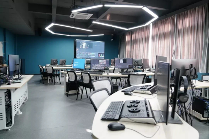 拥有融媒体与国际传播省级实验教学示范中心,下设融合媒体实验室(达芬奇软件国际认证中心)、虚拟仿真演播室、新闻采播实验室、新闻口播实验室、交互设计实验室、多语种国际舆情分析系统、电视节目制作实验室,保证了实践课程的开展,提升学生的实操技能。学院先后成功举办4期视频后期制作工作坊:由国内知名的资深调色师、BMD官方认证讲师姜戈、符振华等担任导师。工作坊聚焦视频后期制作,尤其是调色部分,在教学上不仅注重实操,更着重训练学员的思维、审美、分析能力。工作坊的成功举办为本专业人才培养拓宽了渠道,通过引进业界导师,以强化训练的模式提高学生的专业能力,增强学生实践技能,为培养一专多能的复合型人才奠定了良好的基础。