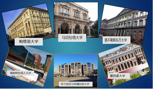 广外意大利语专业与意大利帕维亚大学、马切拉塔大学、那不勒斯东方大学、克莱莫纳玛宁语言高中等9个教学机构签订了学生交换协议。近三年,各班的国际交流比例超过90%。